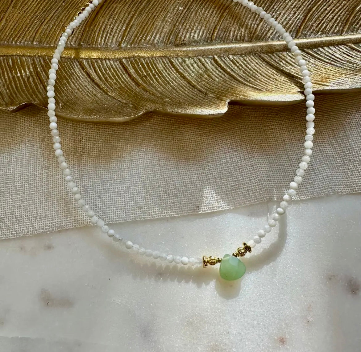 Eine zarte Choker-Halskette mit Aventurin und Mondstein, die dich an Vertrauen, Leichtigkeit und neue Möglichkeiten erinnert.