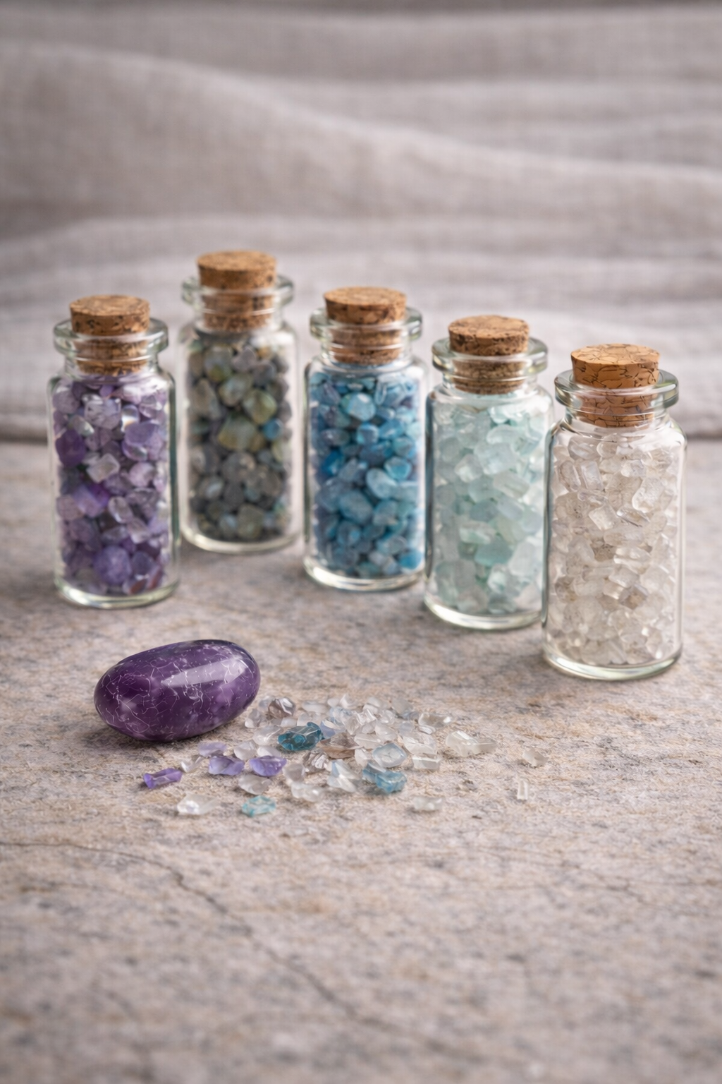 Dieses Set enthält 5 Mini-Kristallfläschchen, harmonisch aufeinander abgestimmt: