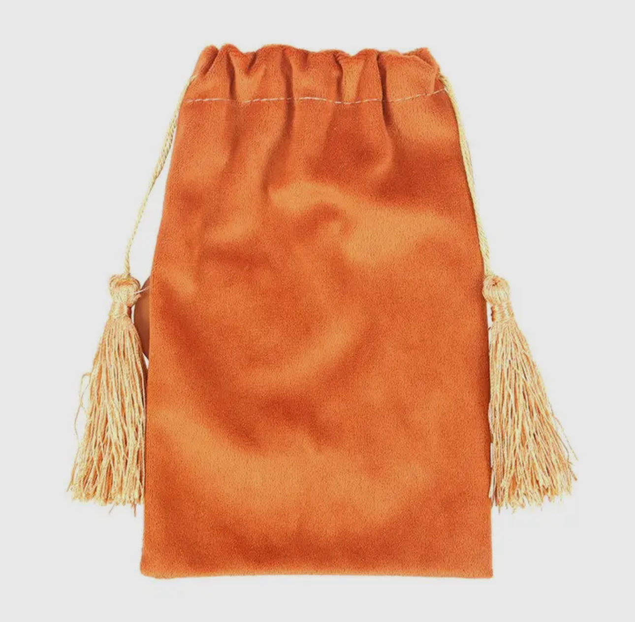 Dieser weiche, orangefarbene Samtbeutel trägt das goldgeprägte Tarotsymbol Wheel of Fortune – ein kraftvolles Zeichen für Wandel, Bestimmung und die zyklische Natur des Universums.