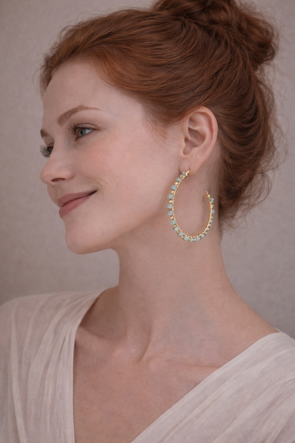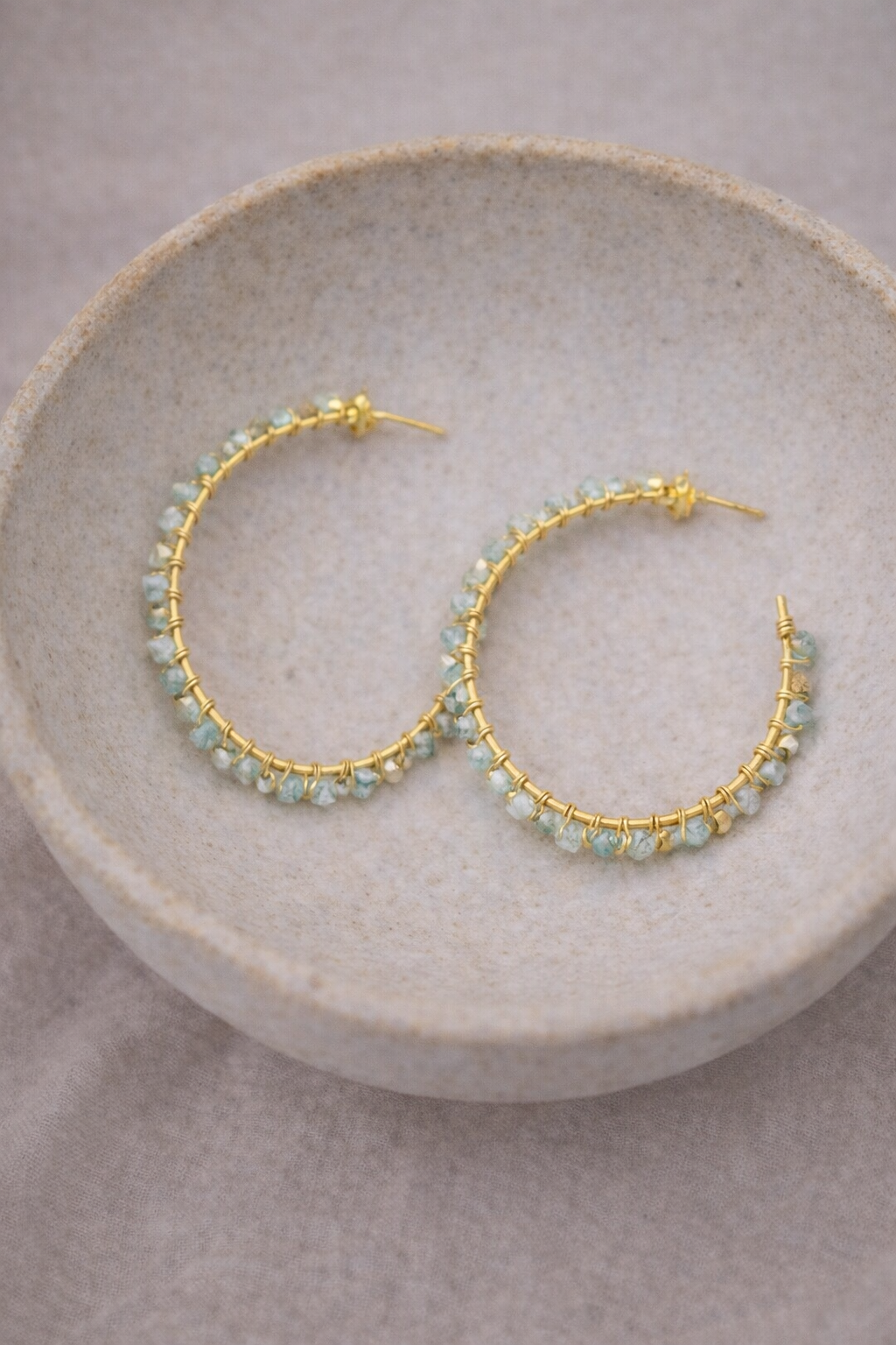 Vergoldete Hoop-Ohrringe mit Aquamarin,
