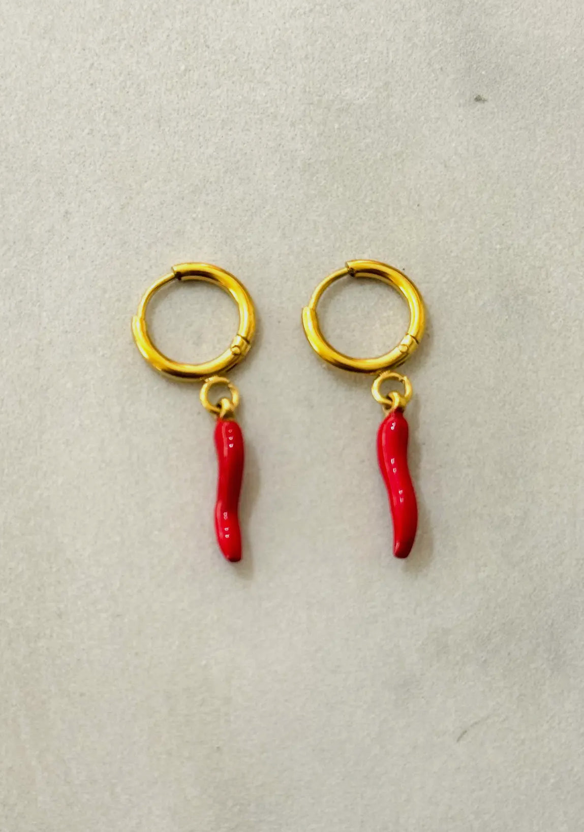Italienische Cornicello-Creolen in Gold & Rot – Schutzsymbol gegen den Bösen Blick, wasserfest, hypoallergen & hochwertig. Perfekt für Alltag & Magie.